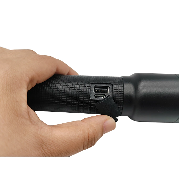 3)Bateri Tahan Lama: Lampu suluh boleh dicas semula didatangkan dengan bateri Li terbina dalam 2pcs 18650 yang boleh dicas semula.