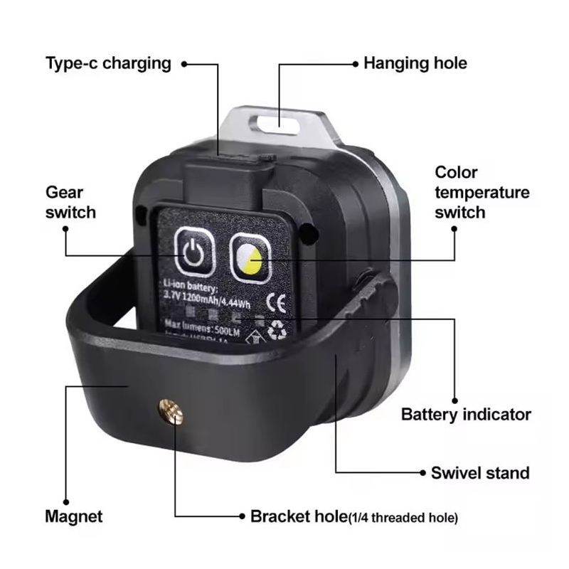 Mudah Alih 500Lumen Lampu Kerja LED China Mini COB Baru Boleh Dicas semula |